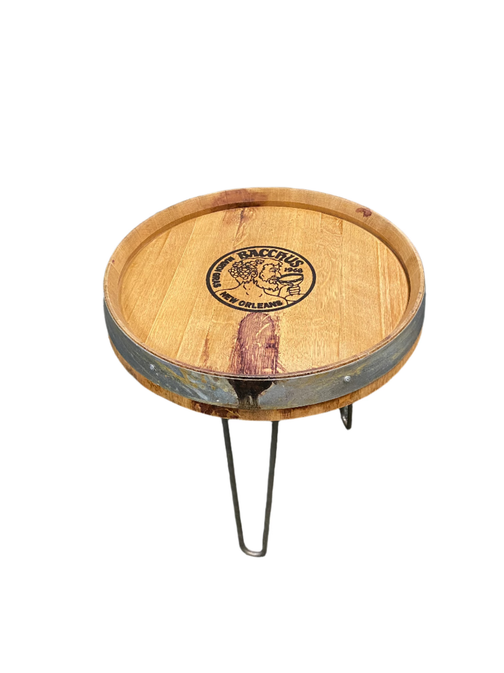 Each barrel top features the Bacchus Crest and will vary in markings and wine stains.